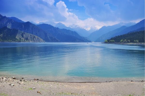 天池是天山上海拔1920米的一個(gè)高山湖泊,古稱瑤池,距離烏魯木齊僅1.5小時(shí)。春夏季節(jié)湖邊野花盛開,山頂冰雪終年不化,哈薩克的氈房如同朵朵白蘑菇開在林間草地,味道鮮美的天山羊在青色的山尖尖上吃草,一眼望去仿佛是山頂上飄動(dòng)的白云。
