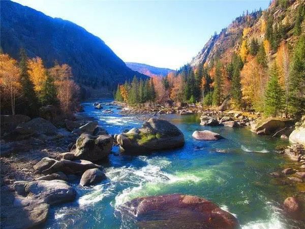 可可托海位于離開216國道不遠的富蘊縣。也是典型的北疆風景,美麗湛藍的額爾齊斯河貫穿景區(qū)中,秋天到處是一片五彩斑斕。