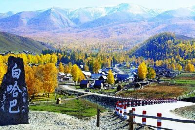 白哈巴是個原始自然生態(tài)與古老傳統(tǒng)文化共融的村落,一切都還保存著幾百年來固有的原始風貌,以圖瓦人為主,位于阿爾泰山山脈的山谷平地上,與哈薩克斯坦的大山遙遙相望,阿爾泰山上密密麻麻的金黃金黃的松樹林一直延伸到白哈巴村里,村民住的木屋和圈養(yǎng)牲畜的柵欄錯落有致地散布在松林和樺林之中,安寧、祥和。