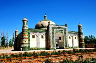 這是一座典型的伊斯蘭古建筑群,也是伊斯蘭教圣裔的陵墓,占地2公頃。據(jù)說墓內(nèi)葬有同一家族的五代72人(實際只見大小58個墓穴)。一代是伊斯蘭著名傳教士玉素甫霍加。他死后,其長子阿帕克霍加繼承了父親的傳教事業(yè),成了明末清初喀什伊斯蘭教“依禪派”著名大師,并一度奪得了葉爾羌王朝的政權(quán)。他死于1693年,亦